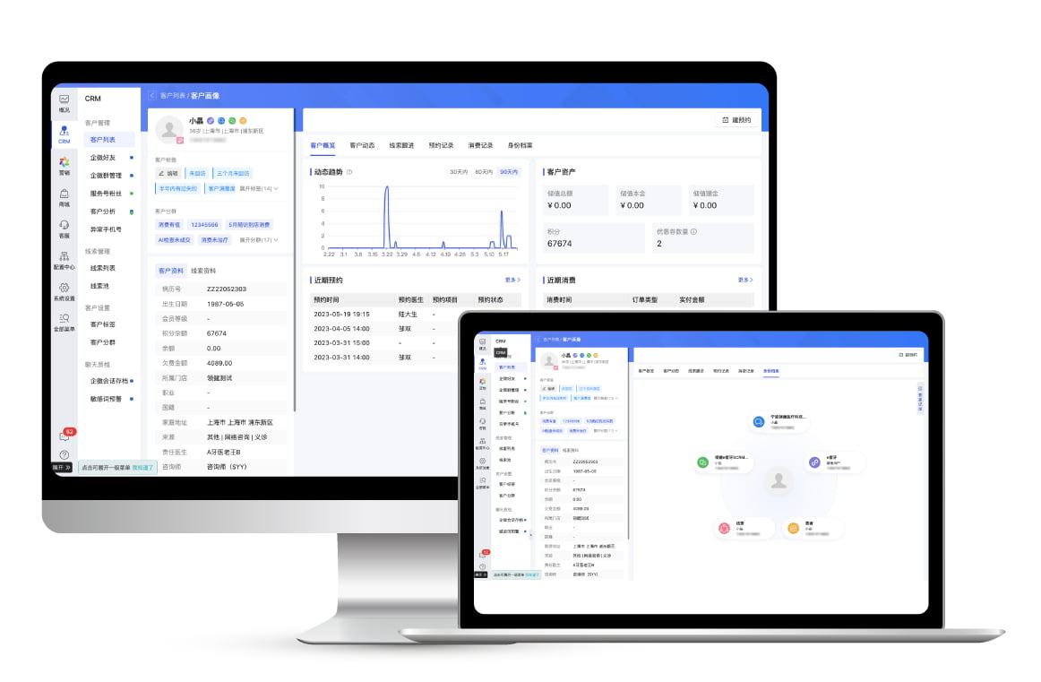 对不同渠道客户身份进行合并,实现实时的动态关联,从而构建诊所客户的360”画像体系,帮助诊所更全面清晰地认知自己的客户。