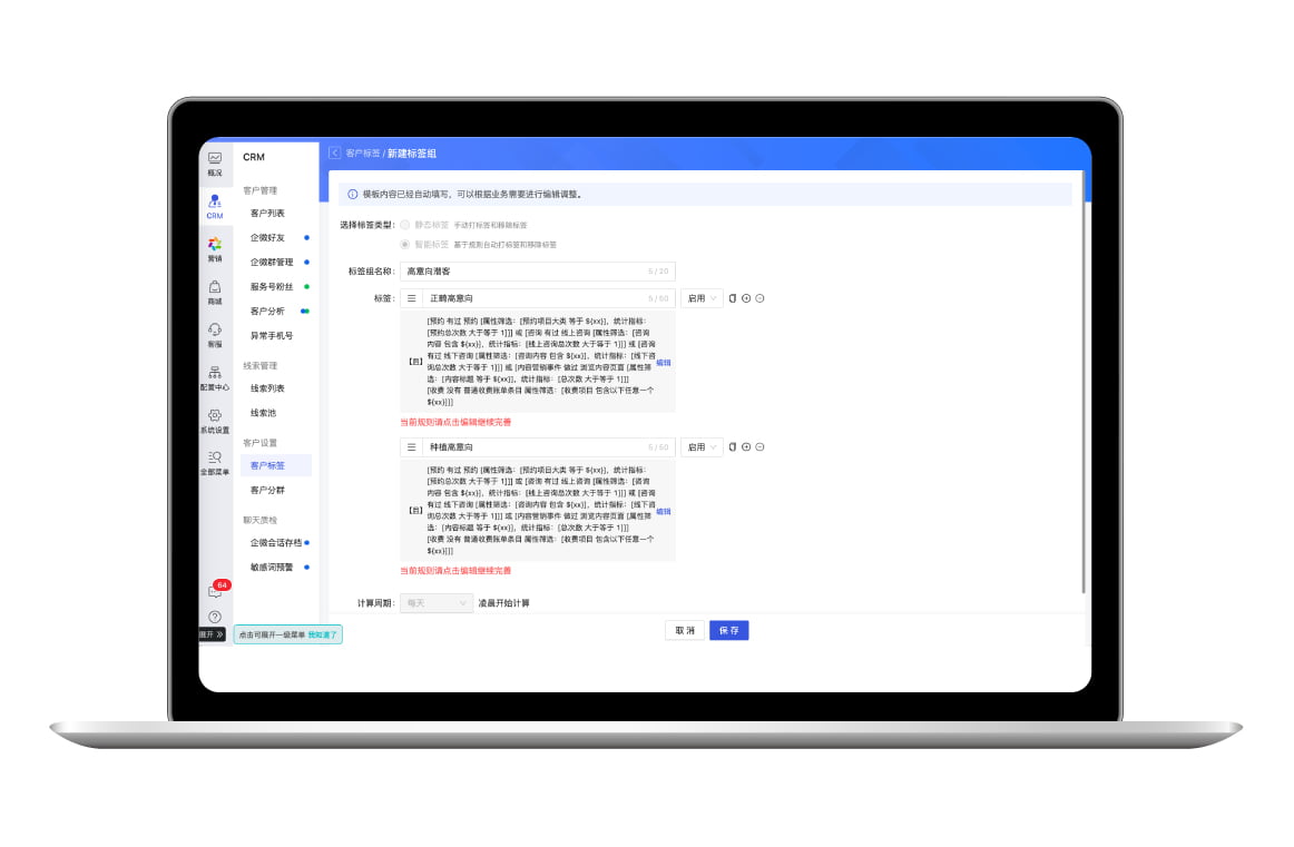 强大的标签能力,辅助客户盘点、客户