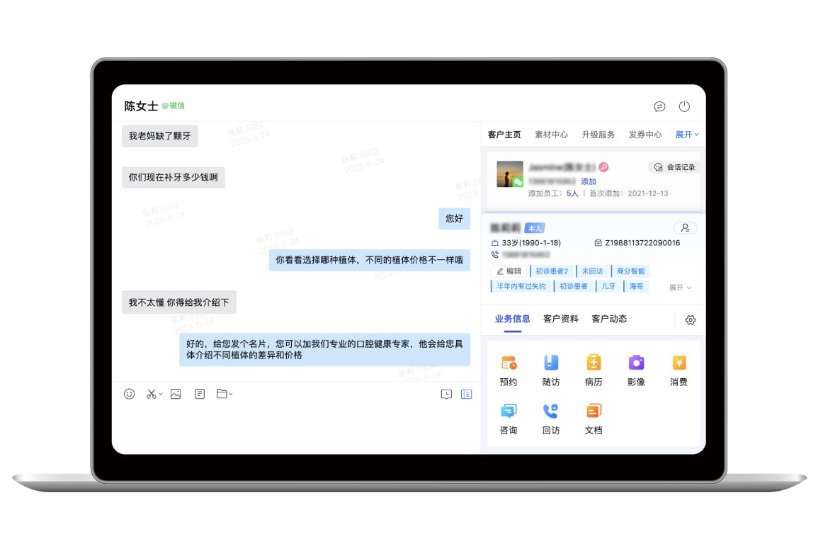 打通e看牙和企业微信、公众号、小程序,开启全域营销