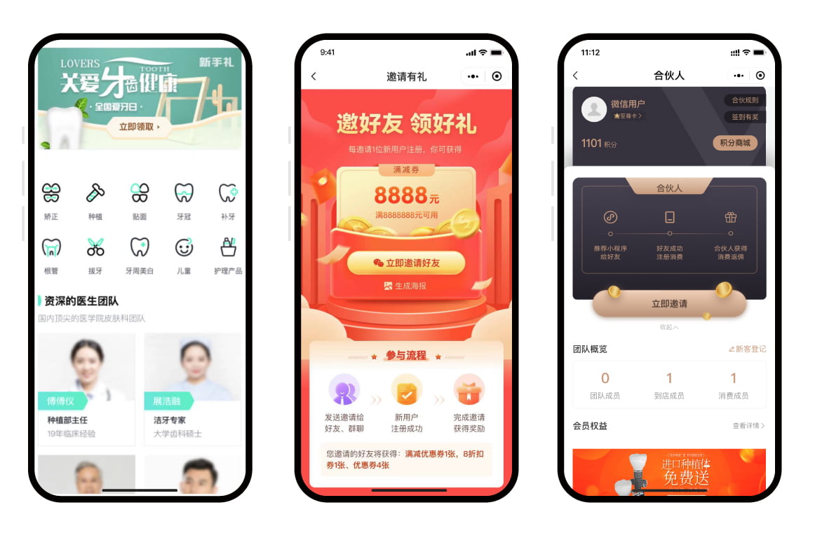 线上商城及商品促销、老客推荐增加复购、助力门店提升转介绍