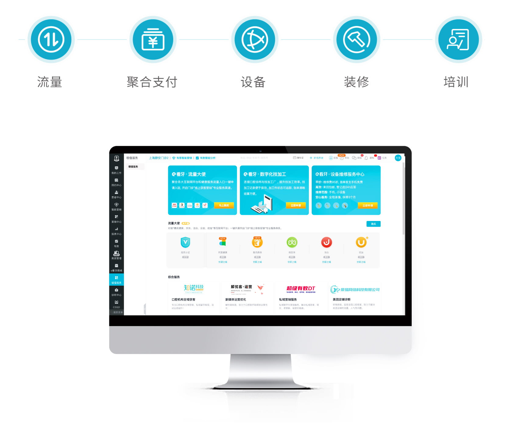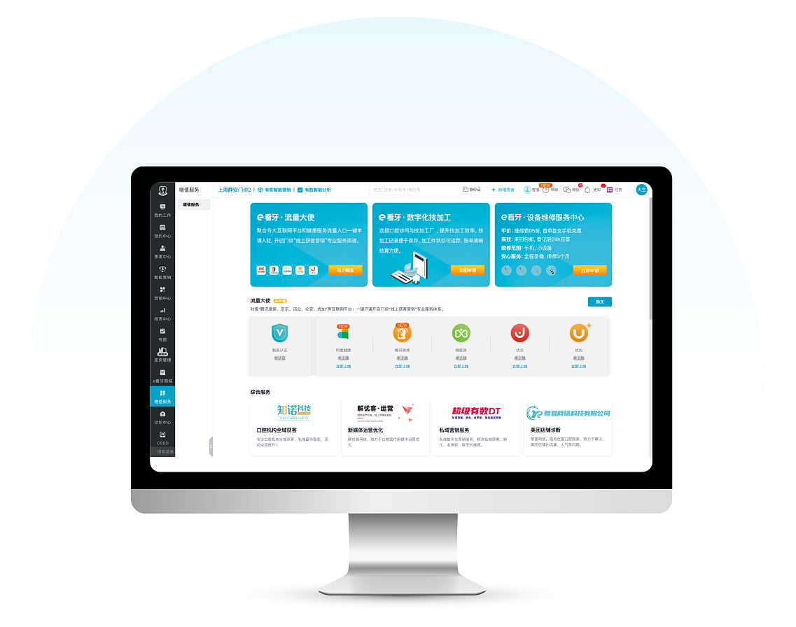 引入跨行业顶尖机构,共同合作,为口腔诊所的数字化转型及运营管理升级提供完整的方案,持续赋能口腔诊所开源、避险、节流、增效。